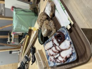 作業の終わりには、JUURI SAUNAさんのオーナー、りくさんにタコの刺身とタコ飯をいただきました。