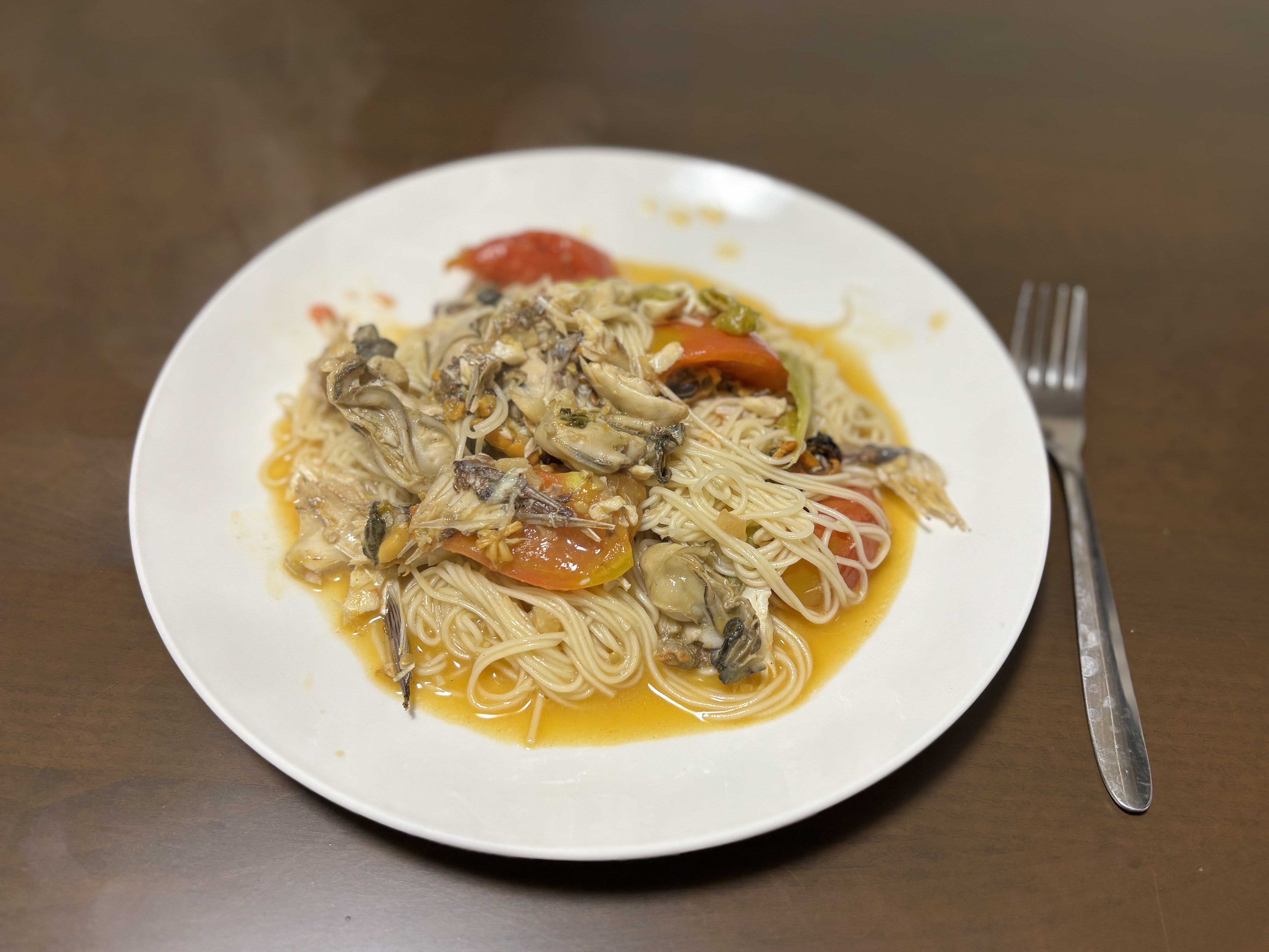 また、後日、余った牡蠣とムール貝は白ワインと生クリームで煮込んでクリームパスタにしてみました。