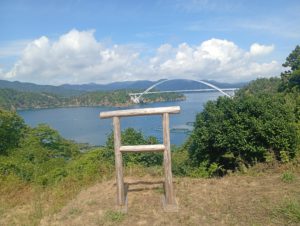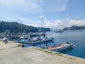女川の中心部から北東部に約10Km行くと出島大橋を渡っていくことが出来ます。橋の上からは養殖いけすや東北電力女川原発が見れました。お盆ということもあり釣り人や墓参りをされる方が多かったです。余談ですが以下は出島大橋についてです。