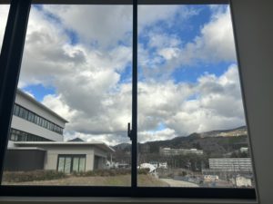 窓の外に広がる青空がとても印象的でした。