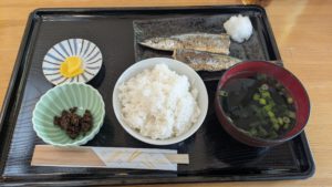 今回インターンで女川にお試し移住させてもらうにあたり女川への理解や地方の町政への理解を深くすることにより、より実りのある活動へとしていきたいたいと思っています!!下の写真は女川到着時にきらら女川でいただいたさんま定食です!サンマがおいしいのはもちろんのことお吸い物のワカメがとてもシャキシャキしていて感動しました!!