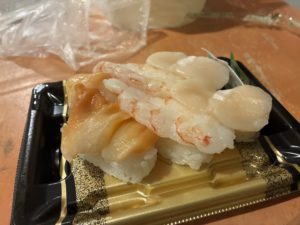 割引になっているお弁当を求めておかせいさんに行きました。私の大好物のえび、ほたて、かいが入っていました。最近は、ほたてにハマっていてお寿司屋さんでは必ず頼むのですが、おかせいさんのほたては、実が分厚いと思います。ほんっまに!美味しかったです。